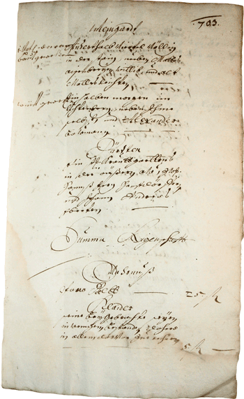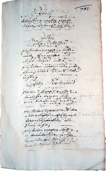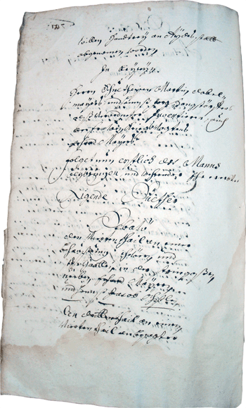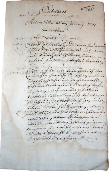 Dieser Vertrag ist das älteste Originaldokument unserer Familie. Er lag viele Jahre im Hauptstaatsarchiv in Stuttgart unter der Nummer "Gündelbach A585" und ist dort im Band 3 (1701 - 1713) zu finden. Seit kurzem befindet sich dieser Band im Archiv der Stadt Vaihingen.
