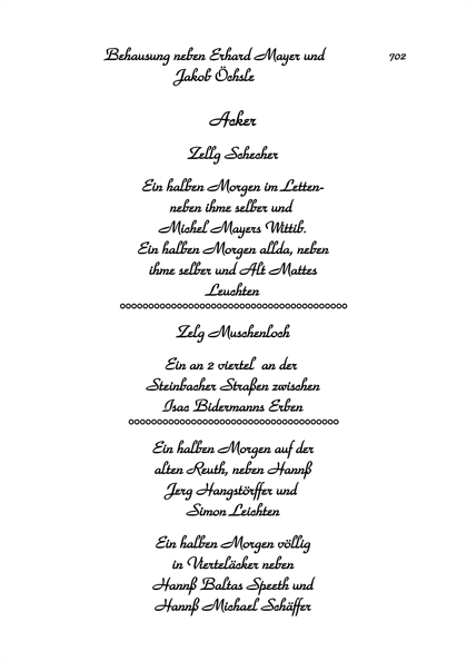 Ein halben Morgen auf der alten Reuth ...: heute gibt es die Kleine Reut und die Große Reut am südlichen Ortsrand. Die häufigste Ackergröße war wohl ein halber Morgen. Innerhalb einer Zelge gab es keine Grenzsteine. Zur Lagenbezeichnung dienten deshalb die Besitzer der angrenzenden Äcker.