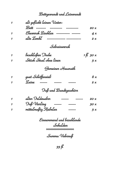 Summa Vahrnuß: sein gesamtes bewegliches Vermögen betrug 33 Gulden, also ca. 700 EURO
